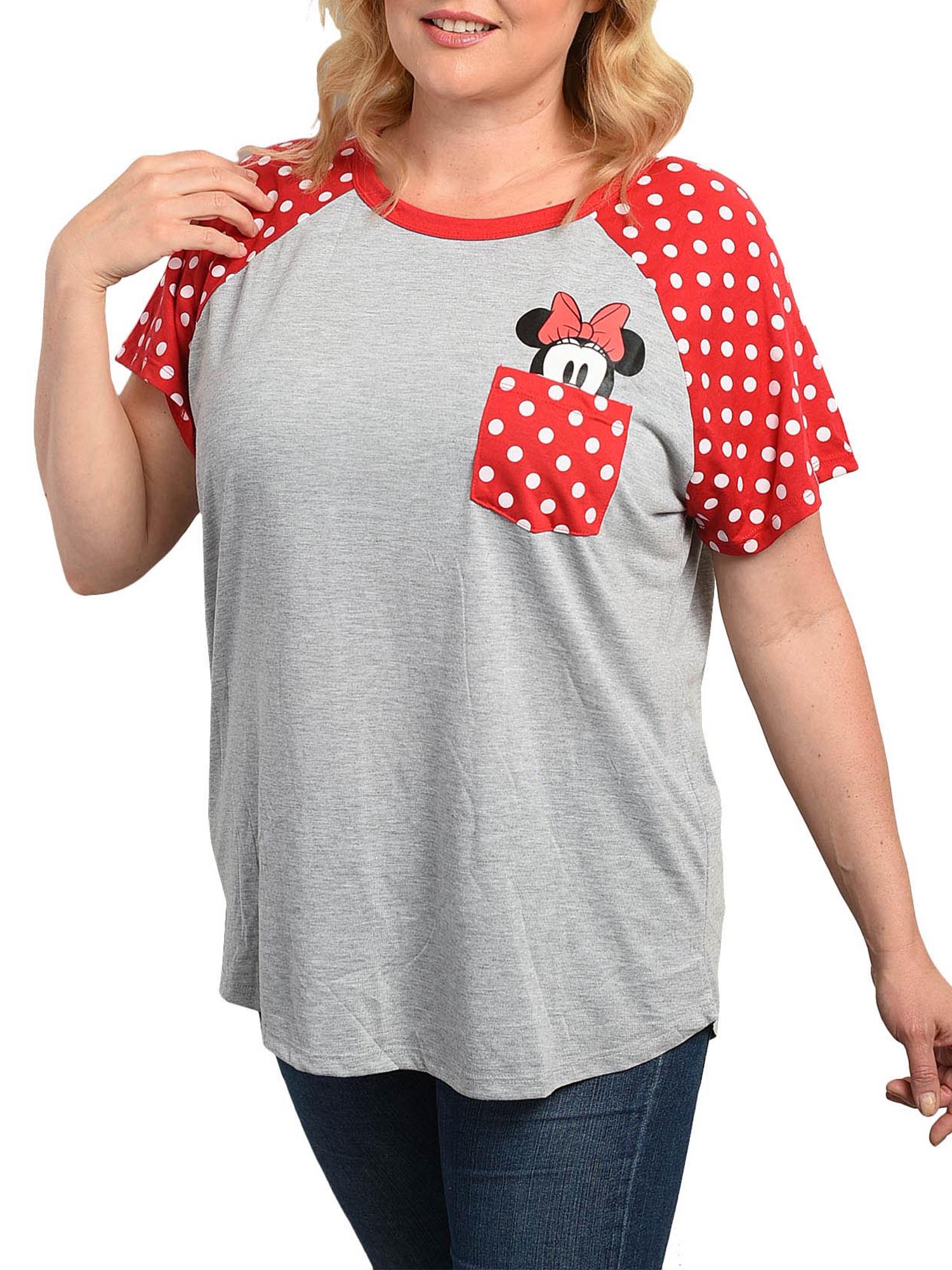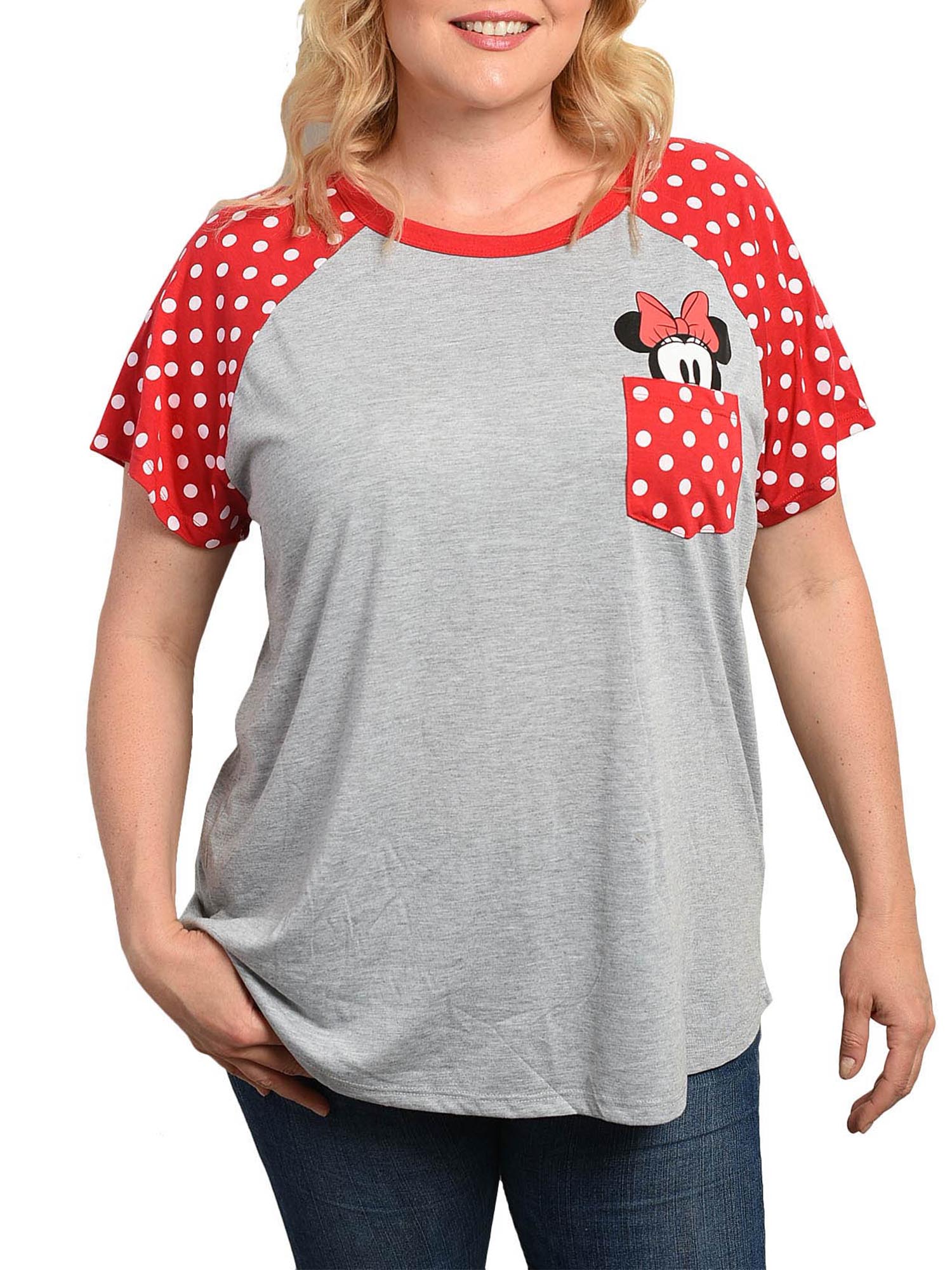 Disney Women Juniors Plus Size Minnie Mouse T Shirt Polka Dot Pocket